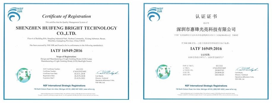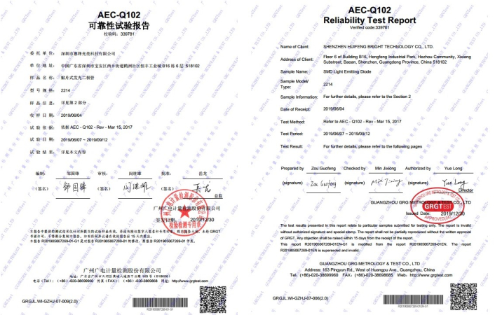 惠鋒光亮科技PLCC Mini-Top產(chǎn)品通過國際汽車電子協(xié)會(huì)AEC-Q102 可靠性質(zhì)量驗(yàn)證規(guī)范認(rèn)可