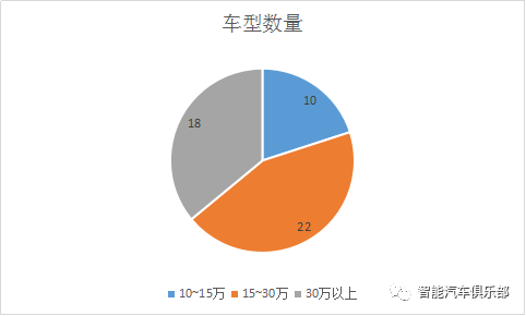 小編整理了2018年國內(nèi)發(fā)布的50種配備氛圍燈的車型,發(fā)現(xiàn)從奔馳、寶馬的高端壕車,到長安、吉利、眾泰、奇瑞這些親民品牌均有分布。下圖是小編統(tǒng)計(jì)的車型的價(jià)格分布圖。